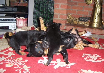 Niquita playtime with 2 week old V litter.