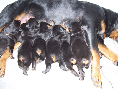 Gina with her one week old litter.